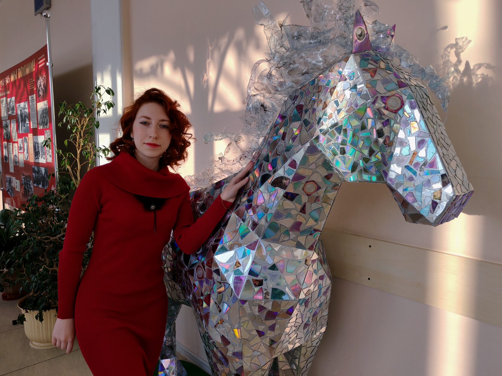Изначально я работала над ним одна, но со временем ко мне подключились коллеги, дети и волонтёрские организации. Они приносили диски, пробки, пластик — всё, что было дома или находили на улицах. Так мы уже большой командой начали превращать мусор в искусство, которое не будет отравлять нашу планету.